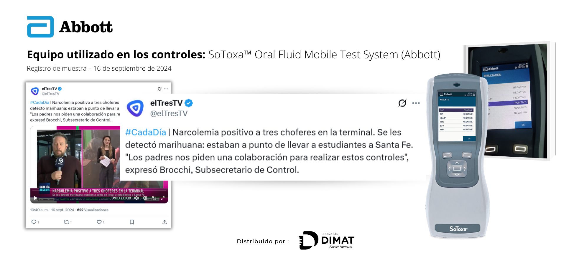 Los test de detección de drogas en saliva para empresas se consolidaron como una herramienta eficaz por su facilidad de aplicación, rapidez y confiabilidad. En esta nota te presentamos dos soluciones líderes de Abbott Toxicology, representadas por Dimat en Argentina: Sotoxa™ Mobile Test System y ABON™ Twist Screen.